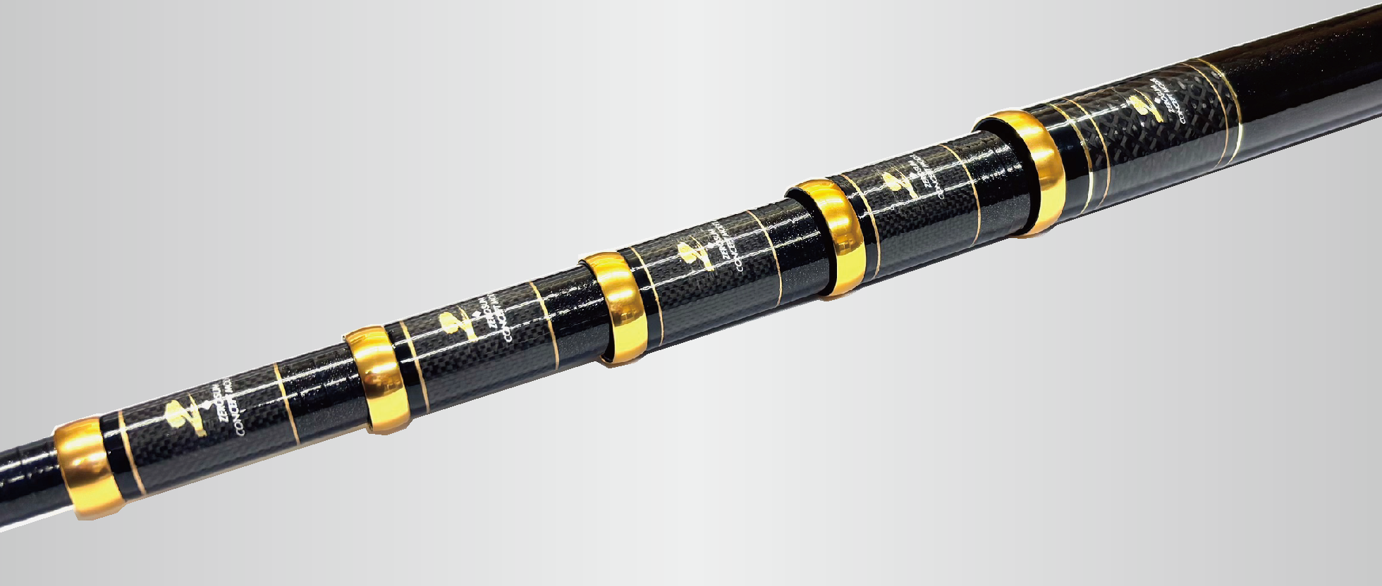 中節部の振出性、滑り性能を高める為、各節の表面に螺旋状にカーボンを巻き付けた凹凸ループ形状を採用。竿内面との干渉を減らし摩擦抵抗を徹底的に抑える工夫。凹凸ループ形状の効果で、より振出時の抵抗を抑え、アプローチ性能を高めます。